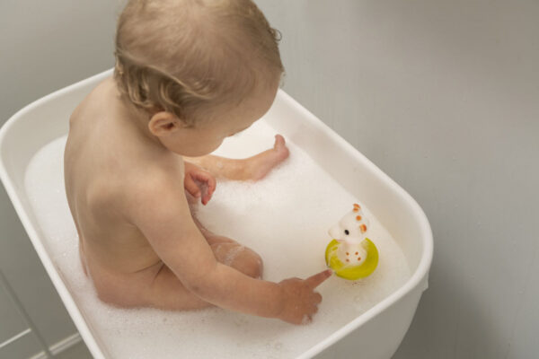 Jucaria pentru baie Girafa Sophie de la Vulli este conceputa pentru a oferi distractie micutului in timpul baitei. Este fabricata dintr-un material moale pentru ca, atunci cand este umpluta cu apa si apasata de manutele bebelusului, sa poata stropi.