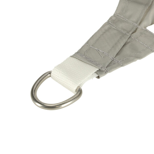 Velă de umbrire triunghiulară – Formă funcțională, colțuri întărite și mobilitate. Forma triunghiulară a velei de umbrire permite o adaptare flexibilă la orice spațiu, în timp ce colțurile special întărite cresc rezistența și tensiunea materialului. Marginile de montare întărite și inelele speciale în formă de D asigură stabilitatea și instalarea sigură .